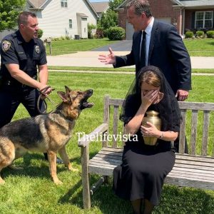 My Retired Police Dog Suddenly Growled at a Crying Widow Clinging to Her Husband’s Ashes, Until the Urn Shattered and Spilled a Secret That Instantly Toppled a Powerful Man’s Entire Global Empire