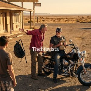 PART 1 — The Morning the Gravel Felt Hotter Than Usual Gray-Bearded Biker at Roadside Motel is the only phrase that makes sense when I try to explain...