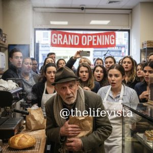 Eva had poured three years of savings into her little bakery… yet on opening morning, not one customer stepped through the door. Then it slowly creaked open. An elderly man in a tattered coat stood there and murmured, “Please… just a piece of bread. I haven’t eaten all day.” Eva hesitated. On her very first day—could she really afford to give anything away? As he began to turn and leave, she called out, “Wait. Sit down. Take the warmest loaf—and some hot milk.” He smiled gently and said, “Before the sun sets… they will come.” And soon after… something extraordinary began to unfold.