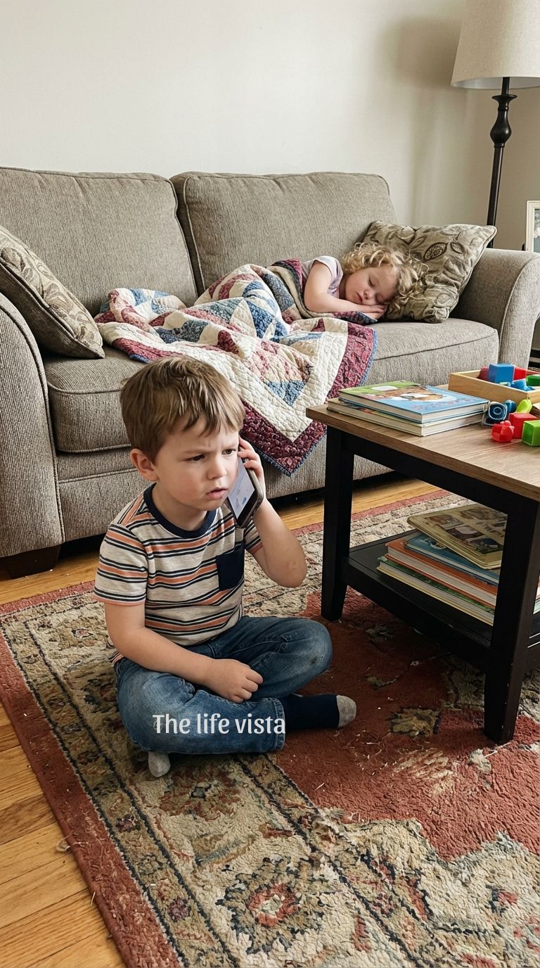 Brecken pointed weakly toward the couch. Thatcher turned. Vesper lay curled under a blanket, her small body too still, her cheeks flushed in a way that didn’t match the rest of her pale face.