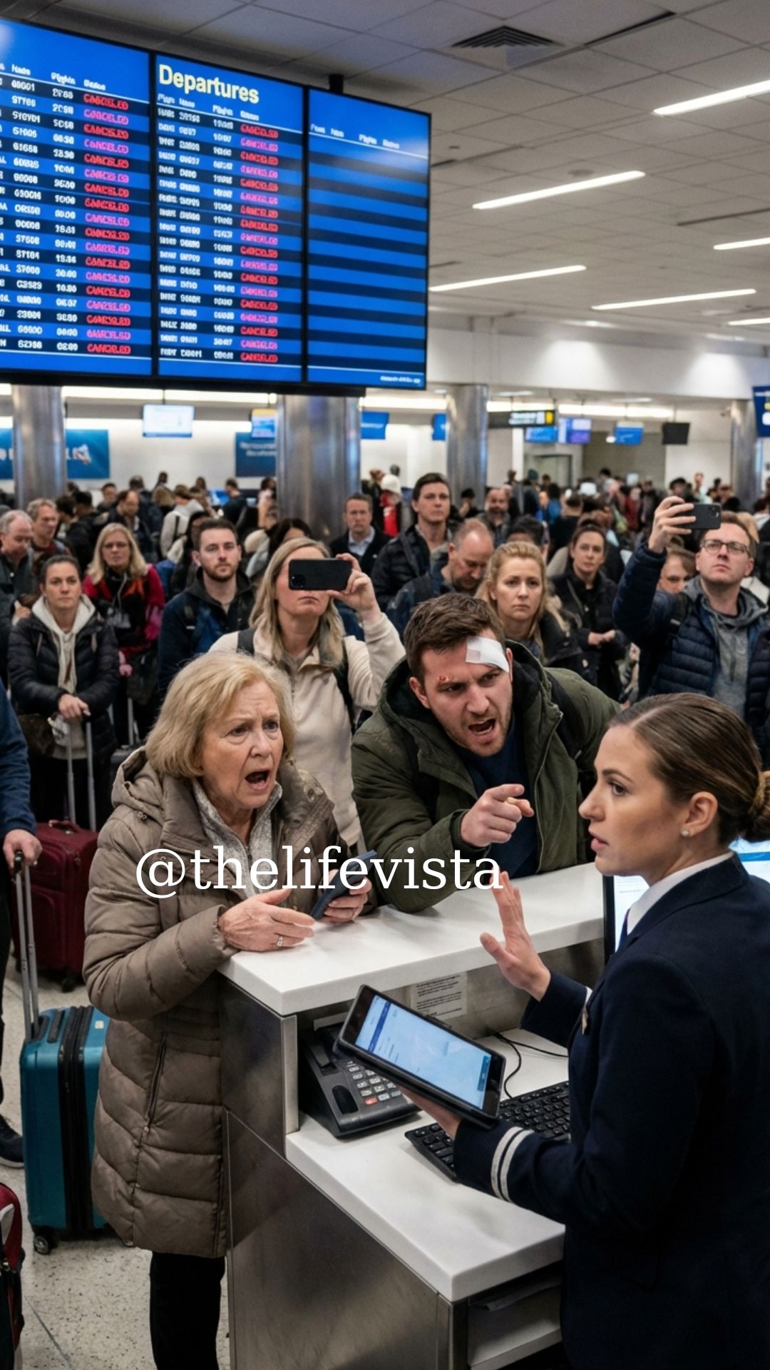 Behind her voice I heard airport announcements and rolling suitcases. She sounded breathless, panicked. “Why does it say CANCELED? We’re at the gate!”