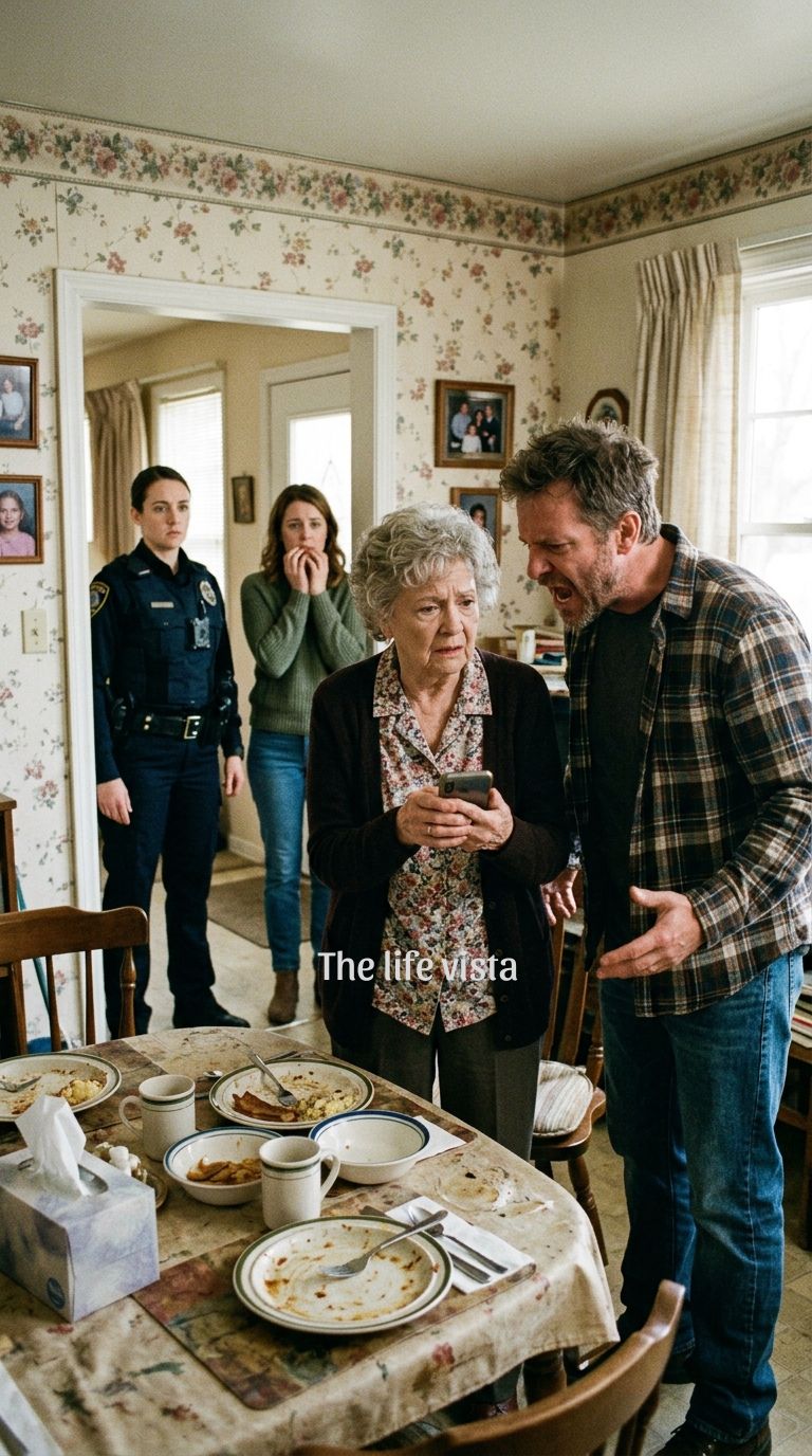 It was the sound that came right before something worse. He pointed at my plate, his face red, jaw clenched. “You sit here eating my food in my house like I owe you something.”