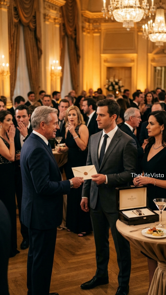 Julian glanced around, maybe realizing for the first time how many eyes were on him. His voice dropped another notch. “You’re making a mistake.” Samuel extended the envelope. “If you want a relationship,” he said, “start with accountability.” Julian did not take it. Did not touch it. Just stared at it like paper could burn. So Samuel lowered his hand and tucked the envelope onto the cocktail table beside that expensive watch. Two objects sitting there together. One bought in ten minutes. One built over nineteen years. That image stayed with me.