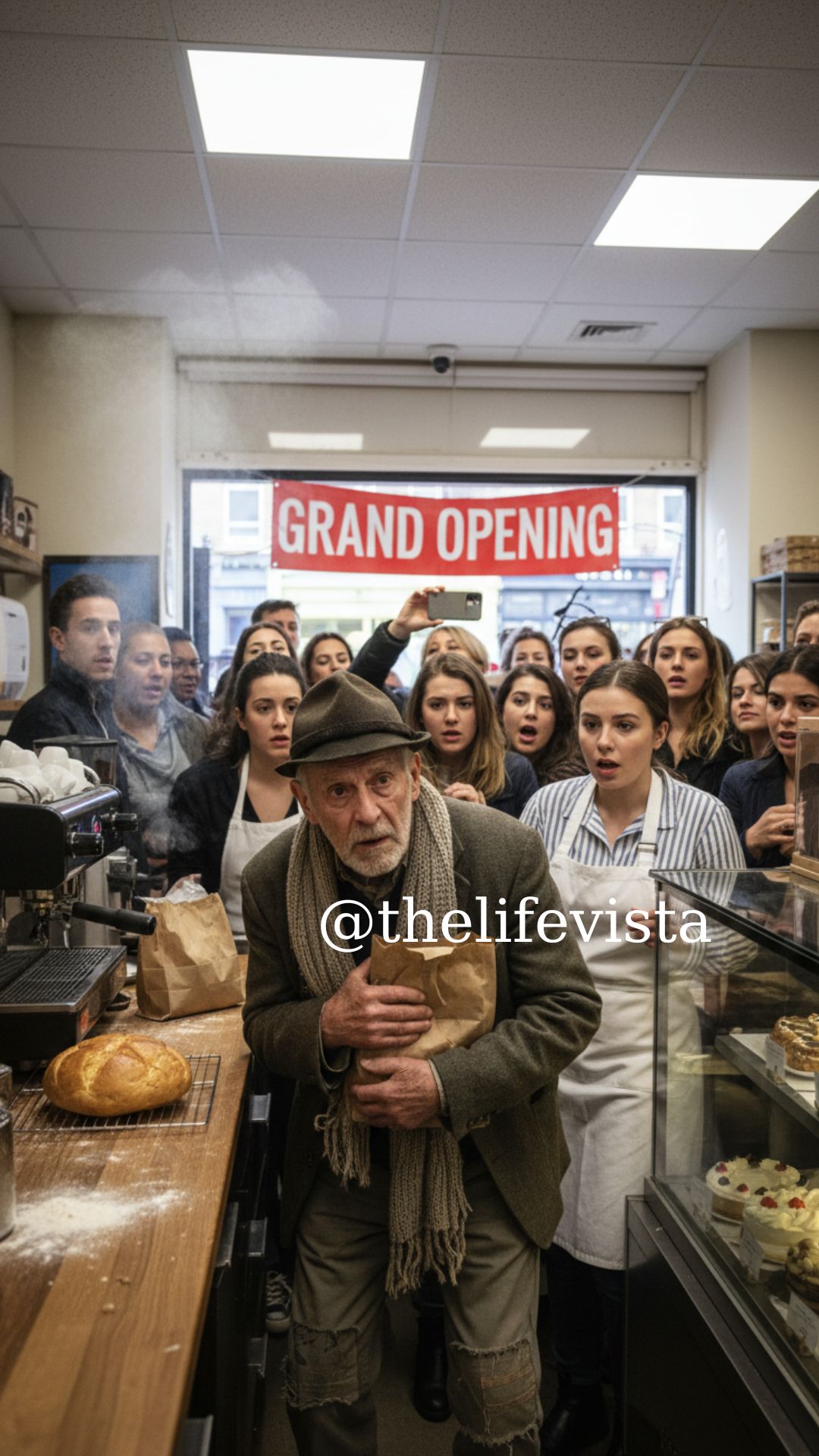The woman held up her phone. “My sister just sent me this. Someone posted about you in the neighborhood group. Said a new bakery opened and the owner fed an older man who looked like he hadn’t eaten in days. People are saying you’ve got a heart. And that your sourdough smells insane.”