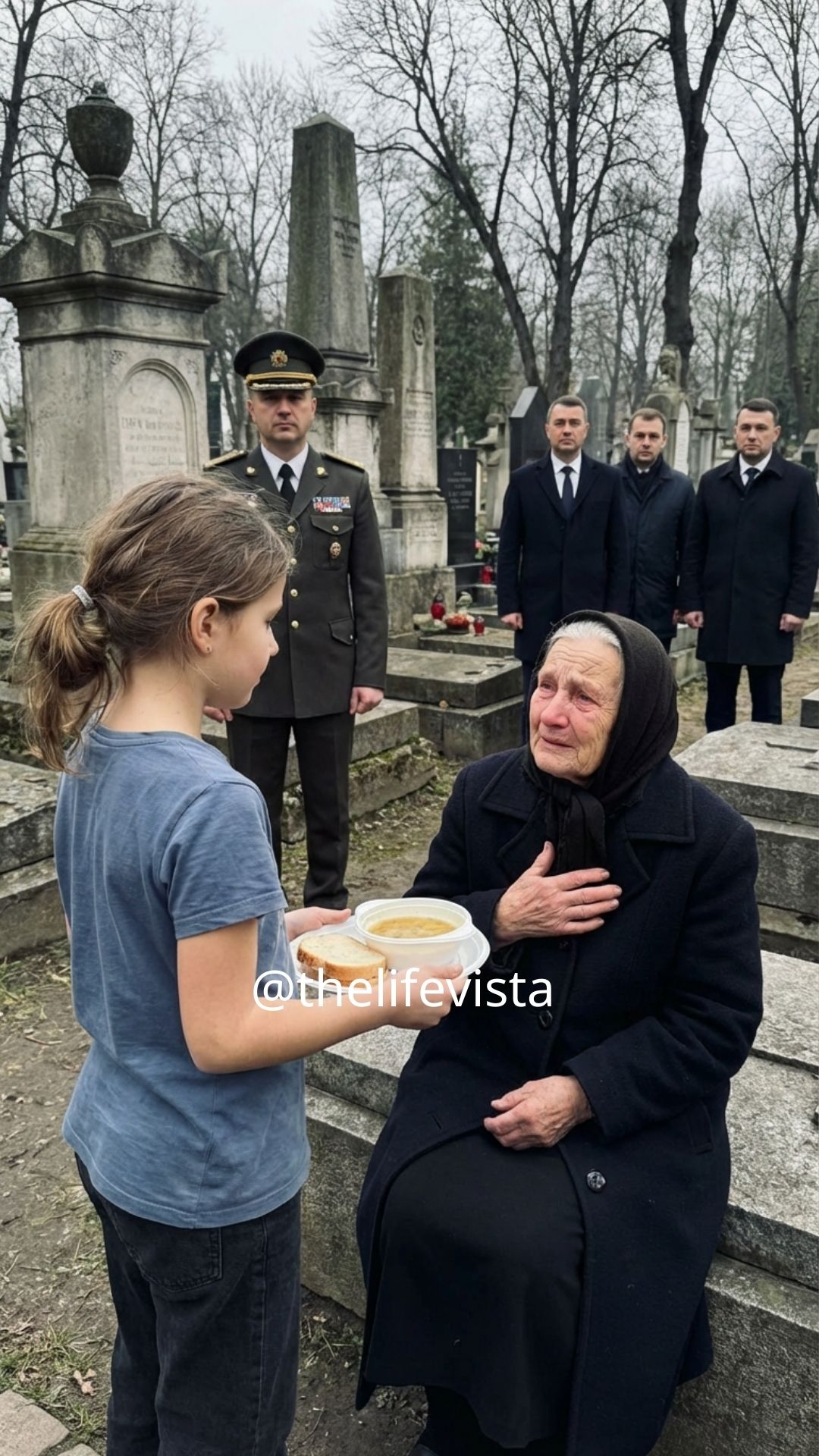 Lily arrived at the cemetery with the warm container like always. The sun was low, painting the trees gold. But before she reached the bench, she heard voices—men’s voices. She approached and saw three men in suits, leather briefcases in hand, shoes too polished for dirt and silence. One spoke in a tone too polite to be kind.