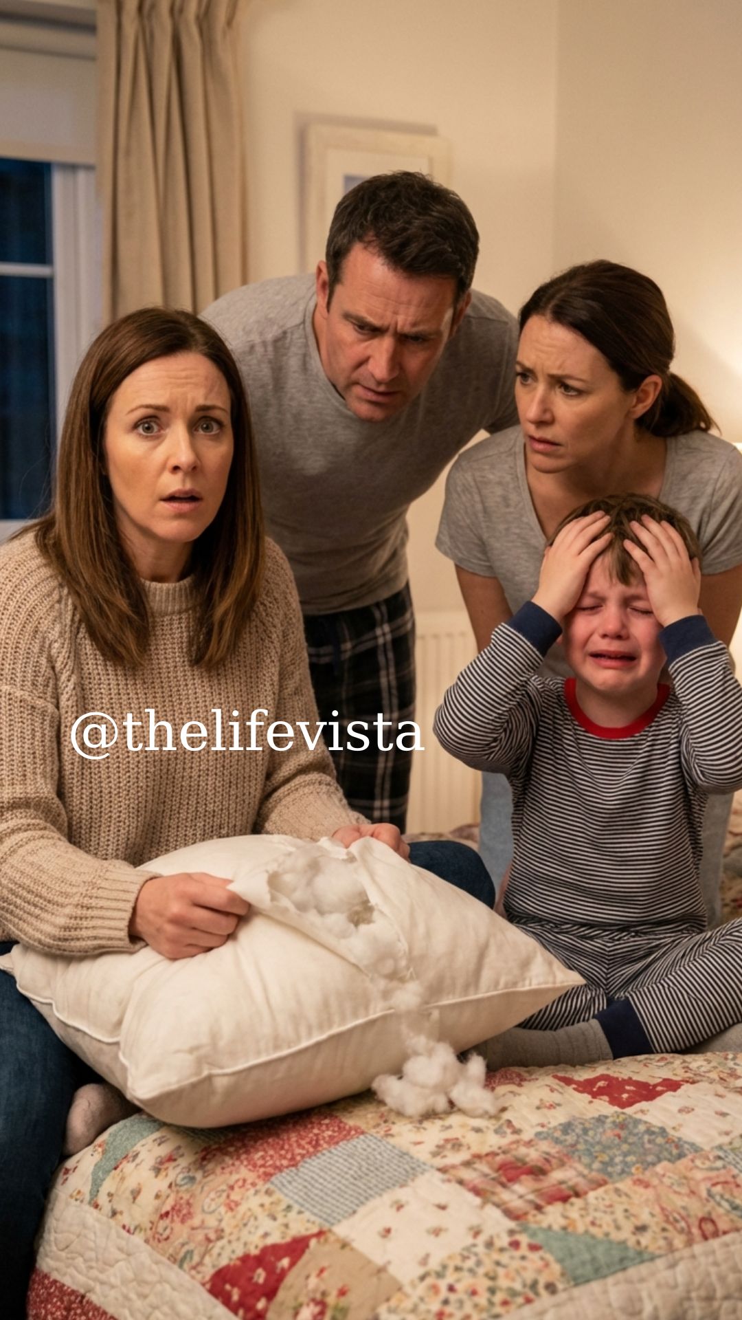 Carolyn stayed frozen in place, heart pounding. When she approached the bed, Lucas had already curled himself into a tight ball on the edge of the mattress, hovering his head just above the pillow, trembling as though bracing for impact.