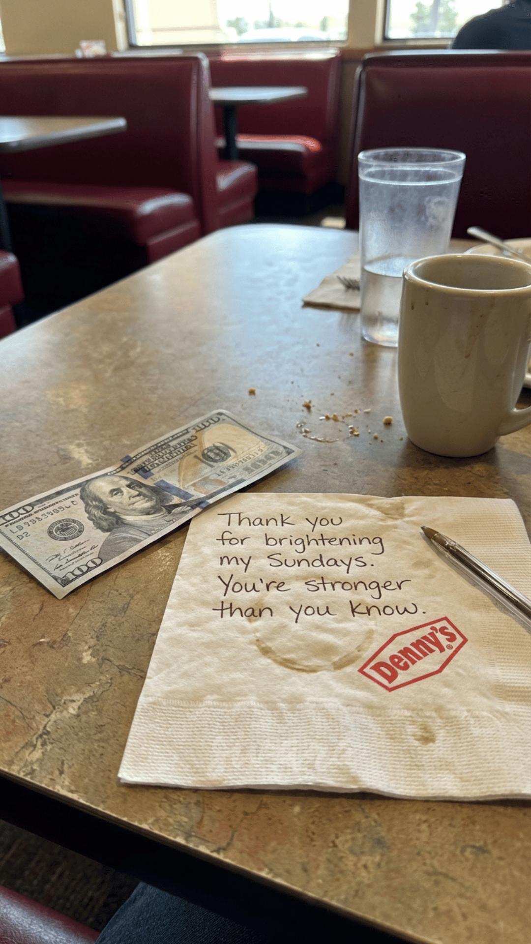 To the kind stranger who makes my Sundays brighter—thank you for reminding me that there are still good people in the world. #grateful #kindness #mysterious #DennysFamily