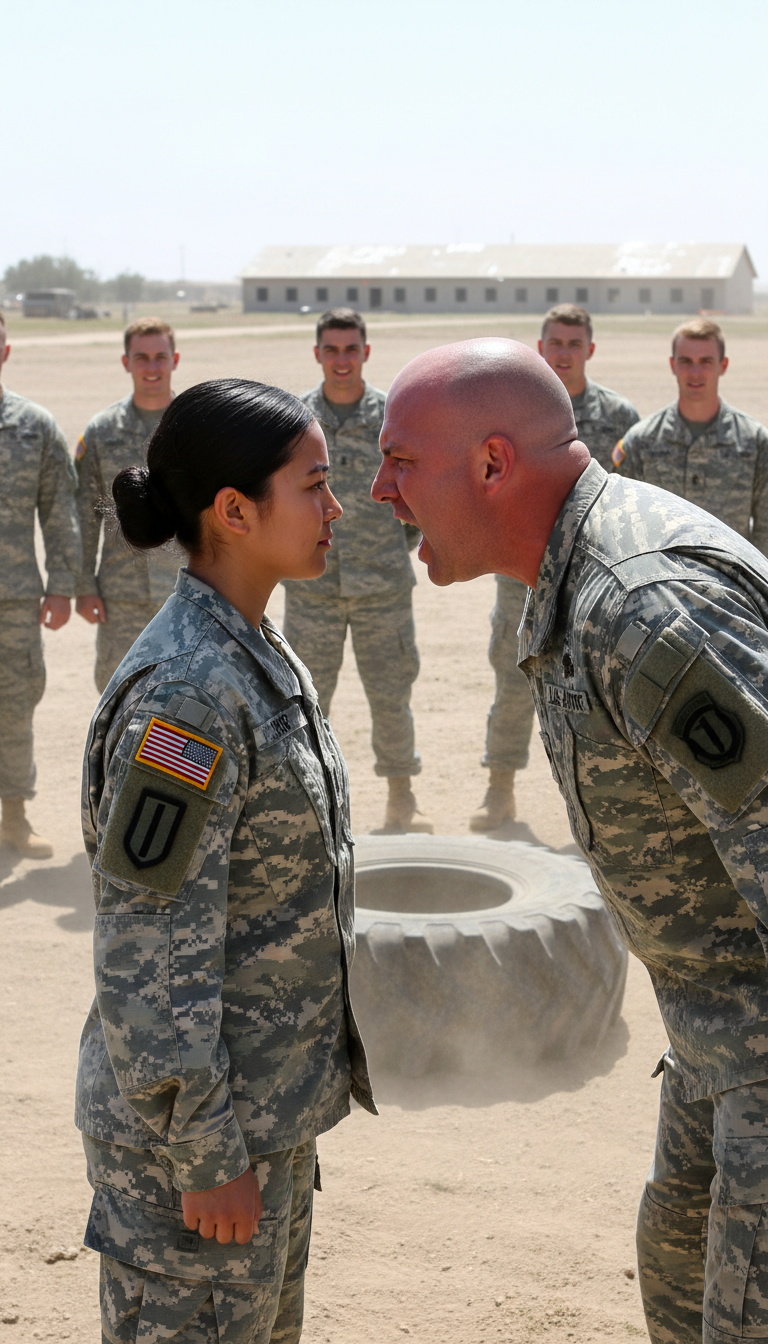 Sergeant First Class Grant Hollis—broad-shouldered, Ranger-tabbed, the senior cadre lead—walked straight up to her like he was stopping a problem before it began. “Name and unit.”