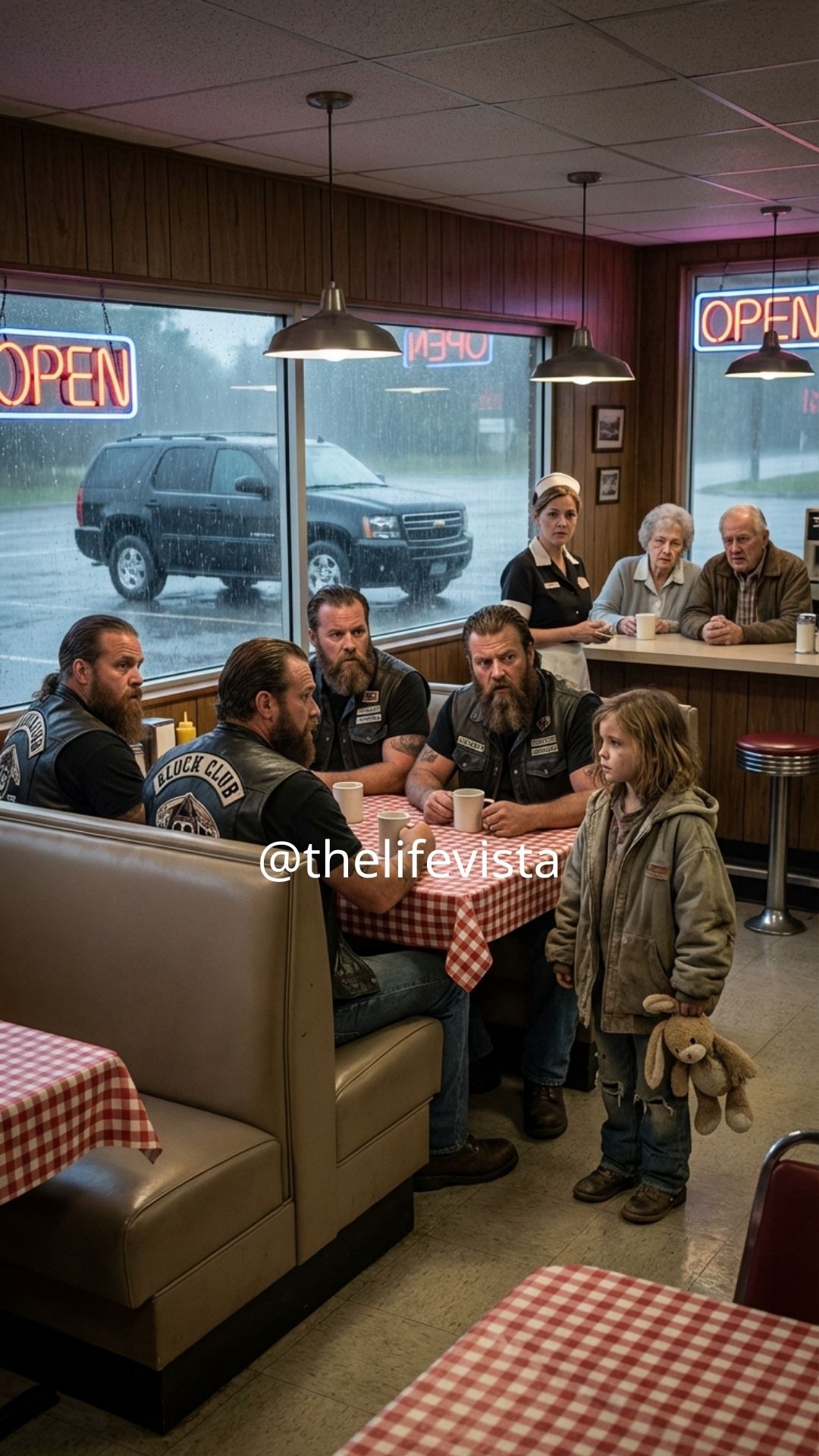 Five feared bikers suddenly fell silent when a little girl walked into the diner alone. But the words she spoke next uncovered a crime the entire town had ignored for years.