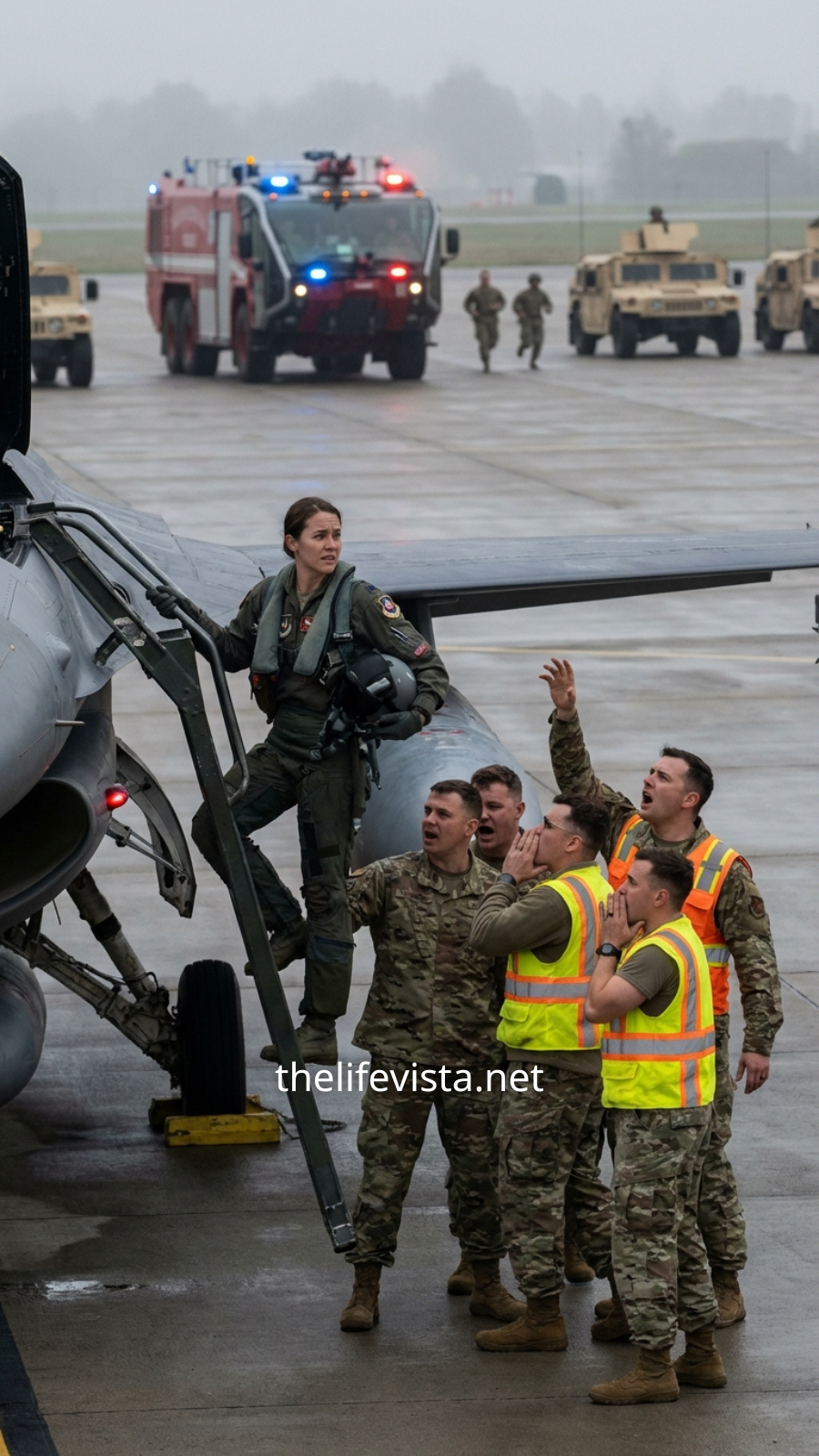 I grabbed my helmet. My hands trembled as I ran across the tarmac, boots striking wet asphalt as rain began to fall in scattered drops. The fighter jet waited ahead, powerful, alive, almost expectant. As I climbed the ladder, the cold metal biting into my palms, something inside me shifted—locked into place.