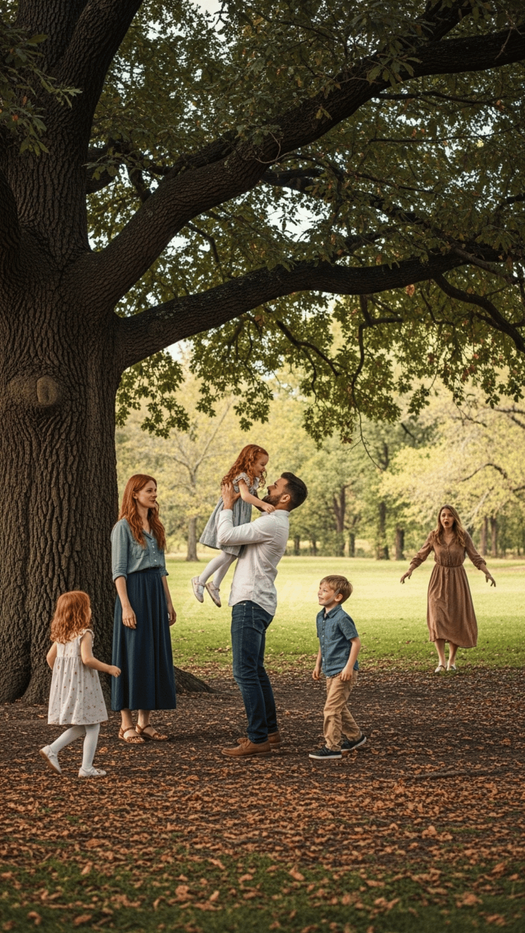 Michael got out of the car with the children and walked toward a giant oak tree. Then I saw her: a woman with red hair, accompanied by a little girl with the same characteristic. The girl, about nine years old, ran toward Michael, who picked her up with a tenderness that chilled me to the bone. Amy and Ben immediately joined in the games, running and laughing with them. Michael was talking to the woman with a closeness I couldn’t ignore. I couldn’t stay still. My legs trembled as I approached them. When Michael saw me, his face paled.