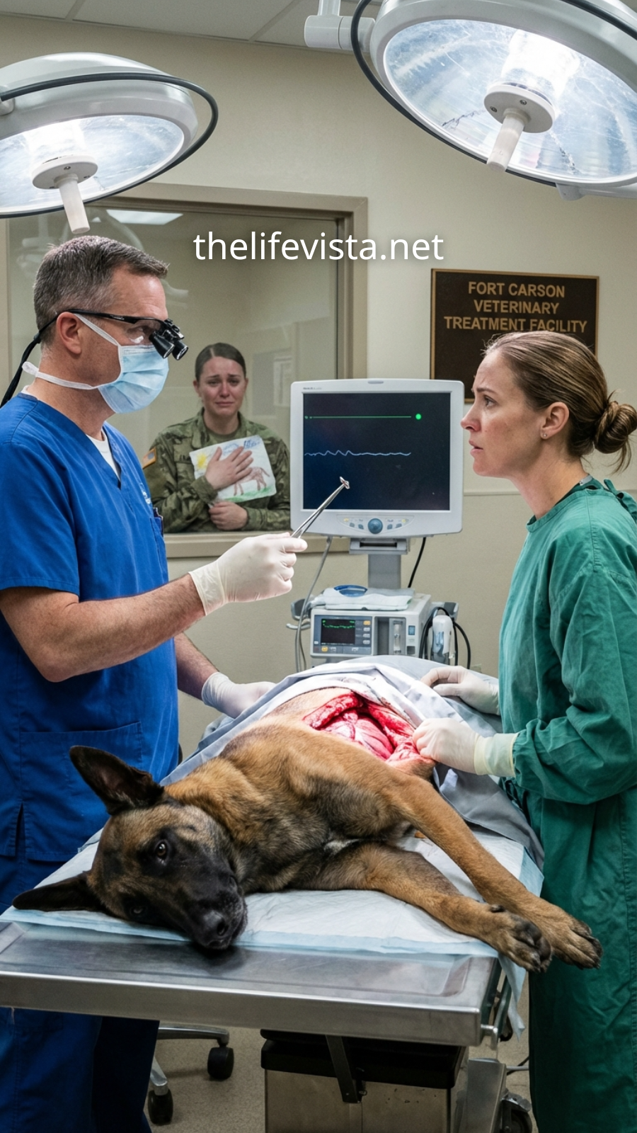 My Belgian Malinois, Rex, lay stretched across a stainless-steel table with his ribs barely rising, and the thin beeps of the monitor kept time like a relentless metronome.