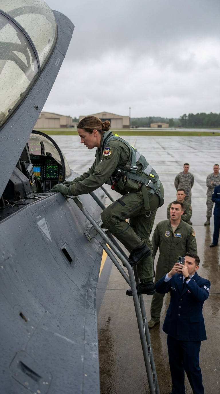 The flight line felt frozen in place, as if the base itself was holding its breath. Phones kept recording, but nobody spoke. Even Captain Vance—who lived for attention—looked suddenly unsure whether he wanted any part of what he’d started.