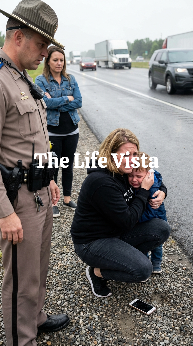 He dragged us onto the shoulder, my boots slipping on loose gravel as a semi roared past close enough that the wind slapped my face and stole my breath. I dropped to one knee, pulling Leo against me as he cried, his small hands fisting into my jacket.