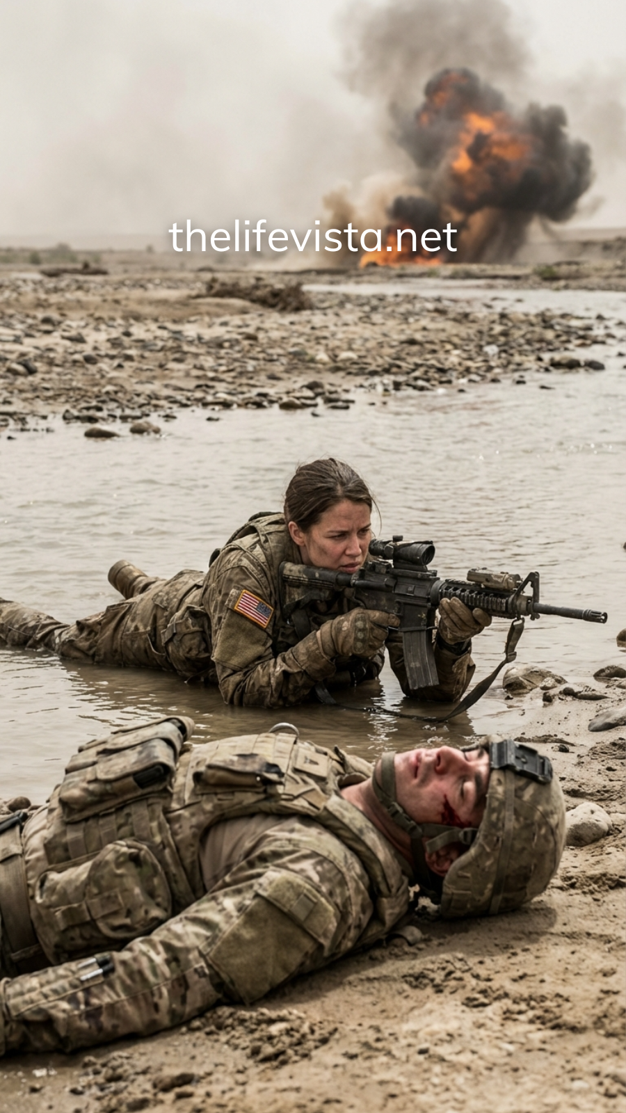 Brooke’s cheek ground into grit. The rifle felt too heavy and too real, like it carried a weight that didn’t belong in her hands. At first she couldn’t even hear her own breathing—only the canyon, only the whip-crack of rounds, only the hollow booms that meant someone had brought an RPG to the party.