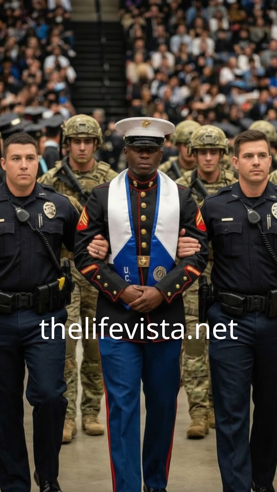A Marine in full dress uniform. A mother standing behind him, tense with worry. Two guards blocking the entrance like they were guarding a secret instead of a ceremony.