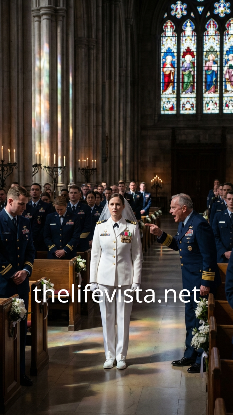 Rear Admiral Claire Whitmore stood alone in the bride’s suite of the old naval chapel in Annapolis, studying her reflection in the tall mirror. The white Navy dress uniform fit her flawlessly—clean lines, crisp seams, medals aligned with almost surgical exactness. The gold stripes on her sleeves caught the light each time she shifted. Nothing about it was accidental. Every detail had been earned.