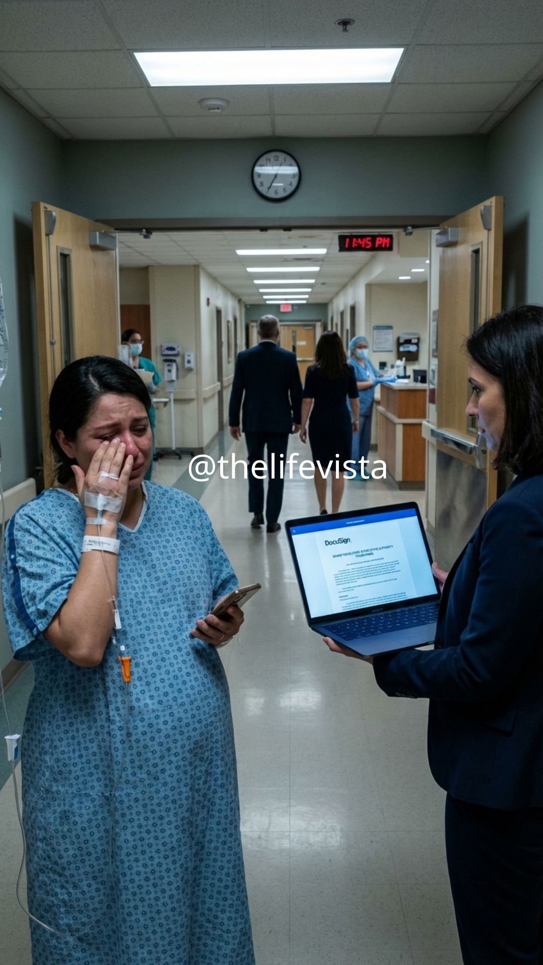 Evelyn stared at the phone until the screen dimmed, as if the device itself was ashamed, and for a moment the hospital around her felt like it was underwater—sounds muffled, edges blurred, her own breathing too loud. Her hand drifted to her belly automatically. The baby kicked once—hard, impatient—like it had heard the words too, like it was protesting the idea of being dismissed before it even arrived.