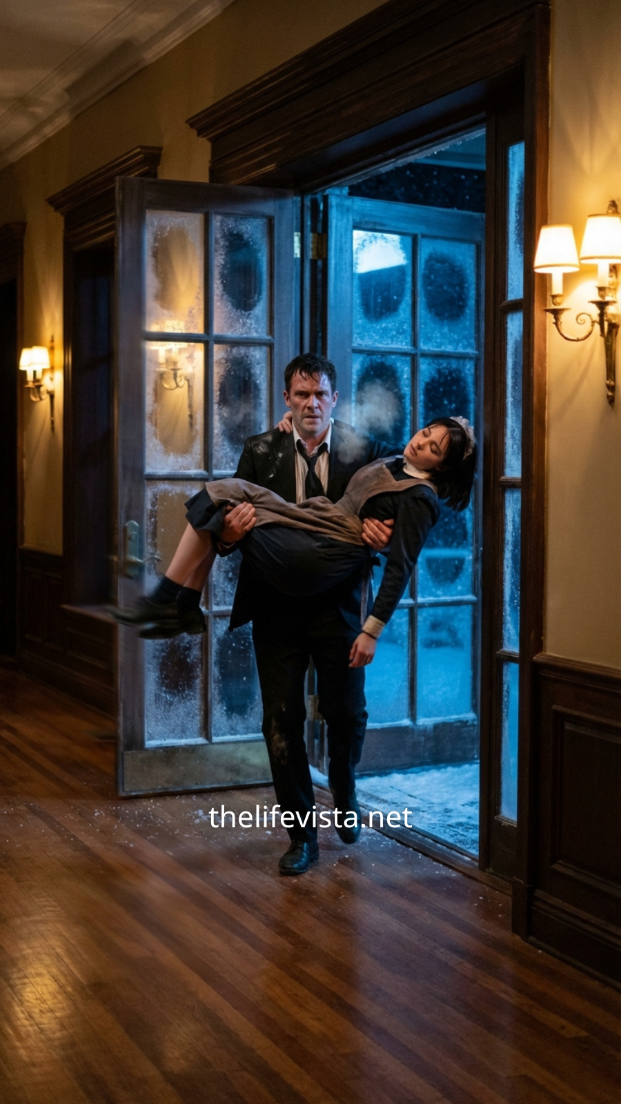 The cold stabbed through his suit within seconds, snow packing around his shoes as he fought the wind toward the dark shape. He dropped to his knees, turned the body, and the face he saw punched the breath out of him in a way bullets never had. It was Vivian Locke. He recognized her not because he had spent time learning the staff, but because she was one of the few people in his house who never looked at him with hunger or calculation, and there had always been a quiet sadness to her, the kind that suggests a person is carrying a burden too heavy to speak about. Now her skin was pale with a blue cast, lips cracked, lashes frozen together. Roman found her pulse, weak and ridiculous, and rage erupted in him, hot and violent, not the controlled anger of business but the kind that comes when you discover cruelty has been practiced under your roof and no one thought you would care. He lifted her carefully, shocked by how light she was, and pressed her against his chest as if his body could be a shield. “I’ve got you,” he murmured, a voice he used with no one. “Don’t you dare die.”