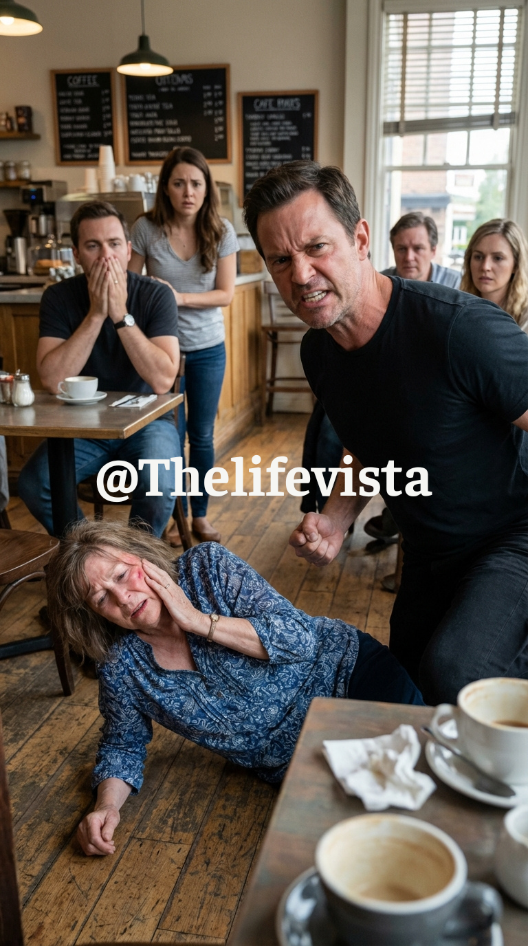 The slap came fast, loud, and deliberate. His hand struck my face with enough force to knock me sideways, my body sliding from the booth and onto the cold tile as my coffee cup shattered beside me. Pain exploded across my cheek, sharp and disorienting, but the silence that followed was worse — a thick, suffocating quiet where everyone chose safety over decency.