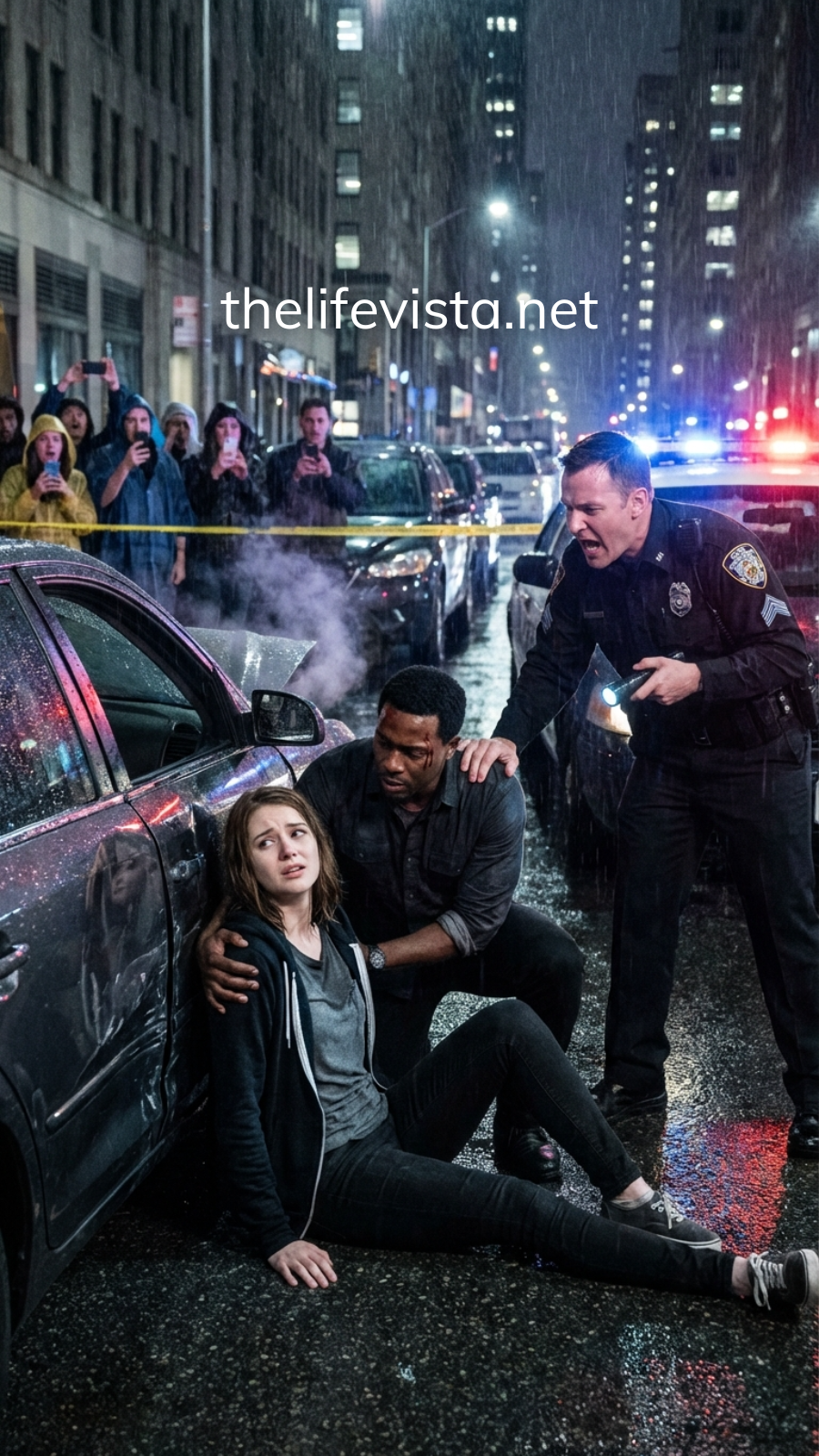 “That’s not what happened!” Marcus insisted, eyes darting to the girl lying motionless in the rain. “Look at her—she needs medical—”