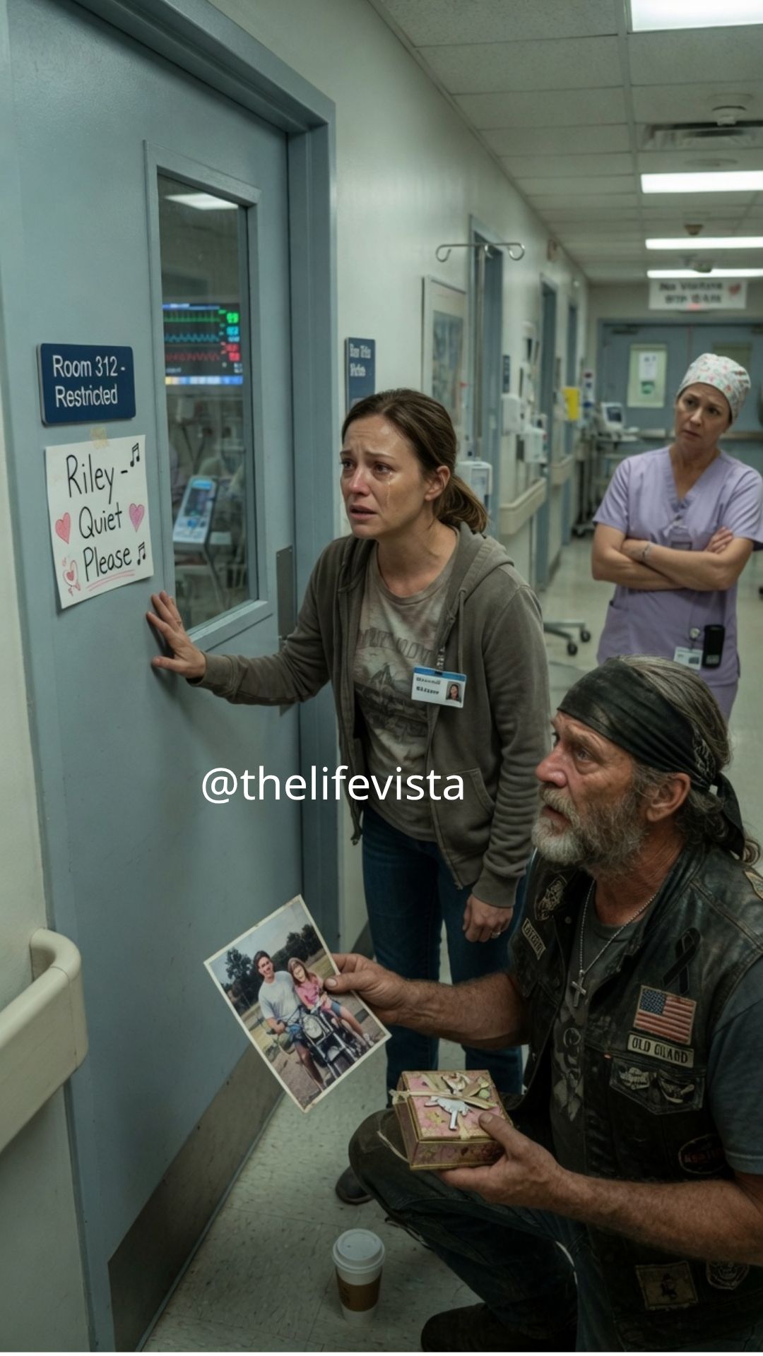 The sterile smell of the hospital seemed to vanish, replaced by the scent of old leather, motor oil, and a past I had buried deep. As Cole’s hand tightened on the handle, I lunged forward. I didn’t think; I simply moved. I slammed my palm against the door, holding it shut with the weight of fifteen years of desperation.