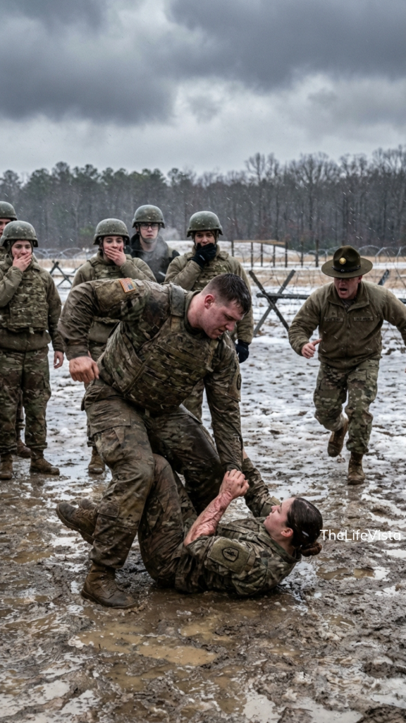 Several recruits stopped. The mechanical sounds of the obstacle course seemed to dial down. Drill Sergeant Hayes was fifty yards away, his back turned as he corrected another squad. We were isolated in a pocket of tension, surrounded by an audience of exhausted, freezing recruits who were too tired or too afraid of Jenkins to intervene.