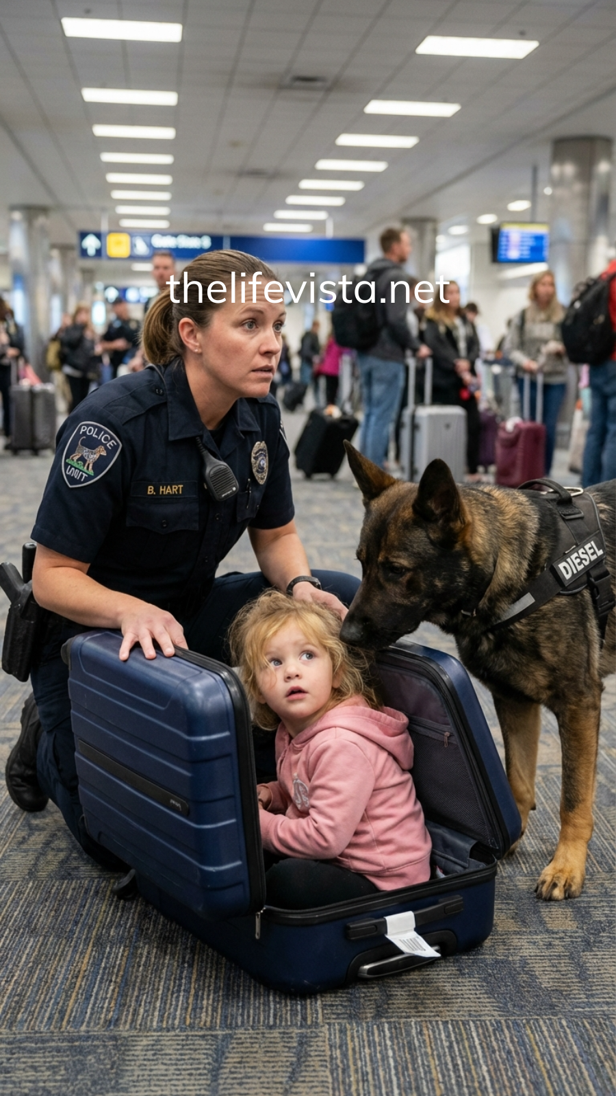 They moved past Gate 12, past a coffee kiosk, past a family arguing over boarding passes, while Rex hunted a human scent through thousands of strangers.