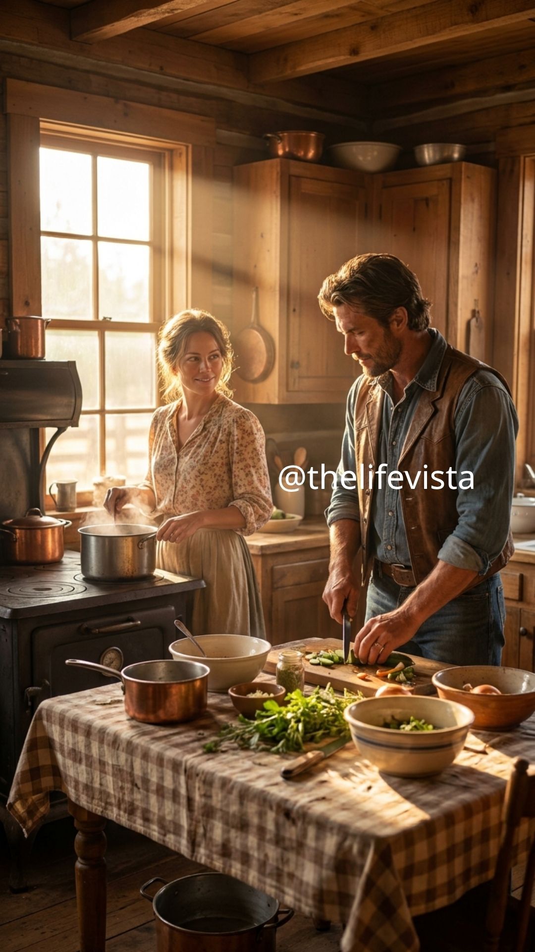 Behind them, the house glowed warm through the windows. The land breathed under the fading light.