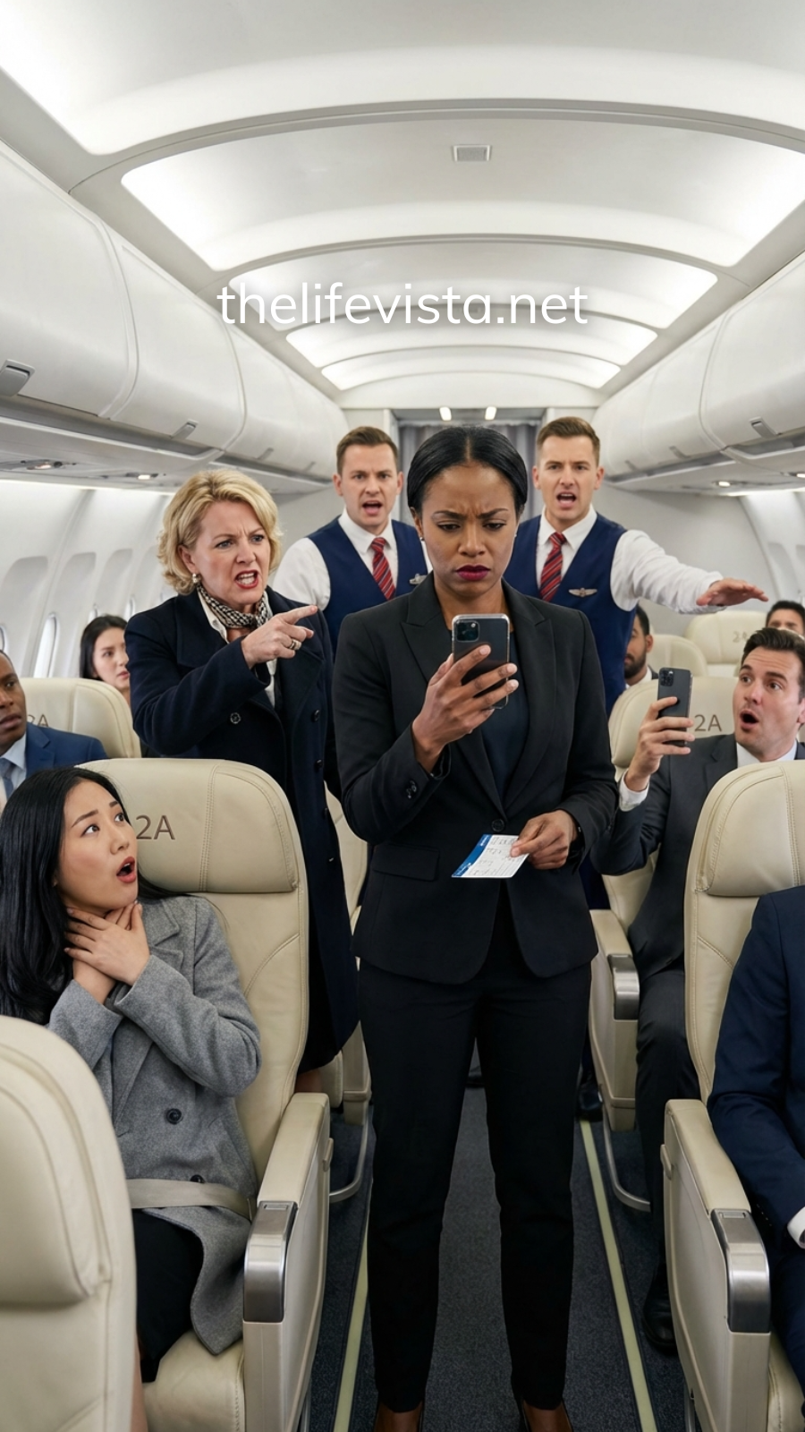 Now first-class passengers were openly watching. Some looked uncomfortable. A few looked entertained. One man whispered, “This is insane,” like he’d paid extra to be seated near drama.
