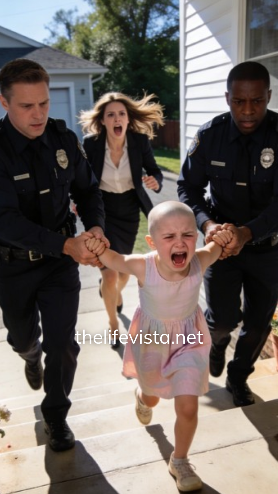 Her bald head, smooth and pale from six relentless months of chemotherapy, caught the afternoon sun. She looked up at the approaching officers with confusion widening her big brown eyes.