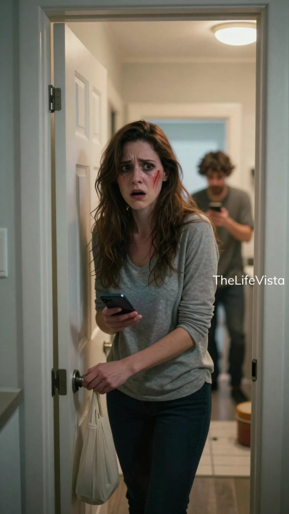 He did not waste time on confusion or pleasantries, and that alone told me he had heard something in my tone that frightened him. He asked where I was, and I said I was home. He asked nothing else, and after a beat that felt longer than it could have been, he said he would be there in five minutes. The moment I ended the call, the pounding on the bathroom door stopped altogether. My husband had not given up, but he had realized witnesses were on the way, and that changed the math for him immediately.
