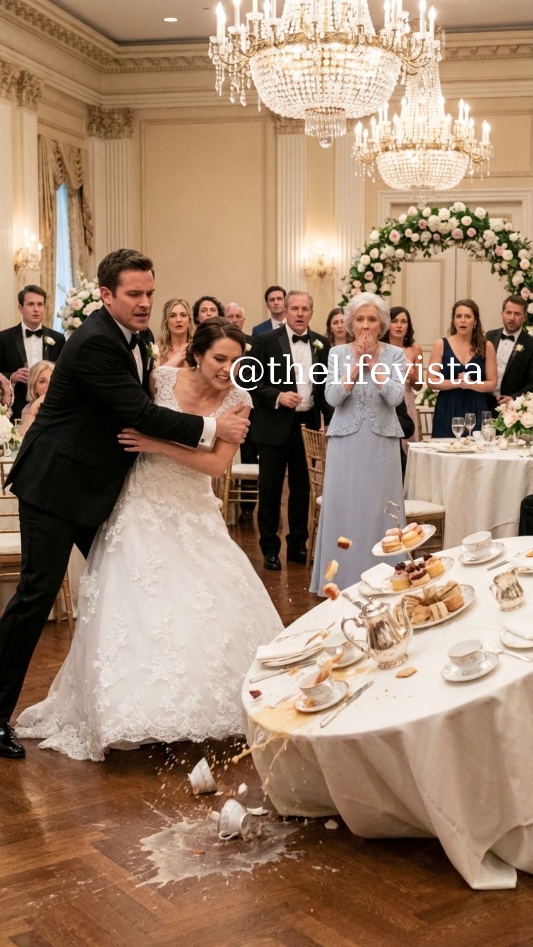 The porcelain teacups shattered first. Then the tiered trays of almond cakes slid sideways, frosting smearing across embroidered silk. Gasps rose from every corner of the private banquet room. Elderly relatives clutched their chests. A violinist near the doorway abruptly stopped mid-note.