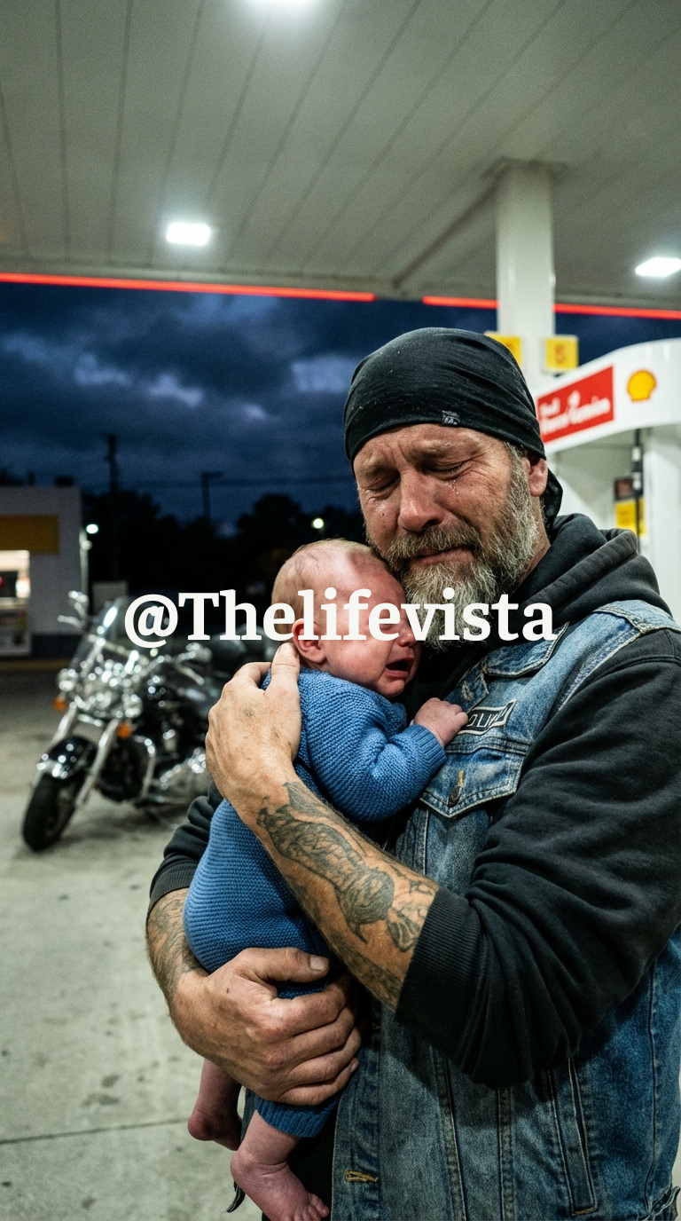 Her name was Rachel. She told me everything. About the man who hurt her. About the threats. About sleeping in her car while pregnant. About standing at that gas station for nearly an hour, unable to walk away, until fear won. “I watched you from across the lot,” she said. “I saw the bike. I thought… she’d be safer with you than with me.” Lily listened from the hallway. I hadn’t noticed her open the door. “You left me?” Lily asked quietly. Rachel dropped to her knees. “I tried to come back,” she sobbed. “I just didn’t know how.” The courts got involved. Again. Social workers. Lawyers. Questions Lily was too young to have to answer. Rachel didn’t want custody. She wanted forgiveness. She wanted to see her daughter. I was terrified. Not of losing Lily—but of breaking her heart by trying to protect her from pain she had a right to understand. One night, Lily climbed into my bed. “Are you still my dad?” she asked. I pulled her close. “Always.” She nodded. “Then I want to meet her. But I want to come home with you.” Rachel became part of our life slowly. Supervised visits. Awkward conversations. Healing that didn’t follow a straight line. She never tried to replace me. She just wanted Lily to know she was never unwanted. Years later, Lily calls her “Mom Rachel.” I don’t hate her anymore. Because love isn’t about who stayed first. It’s about who stayed when it was hard. And every time I pass that gas station, still flickering, still lonely, I remember how one abandoned baby turned a biker into a father—and how the past doesn’t always come back to destroy you. Sometimes, it comes back to finally tell the truth.