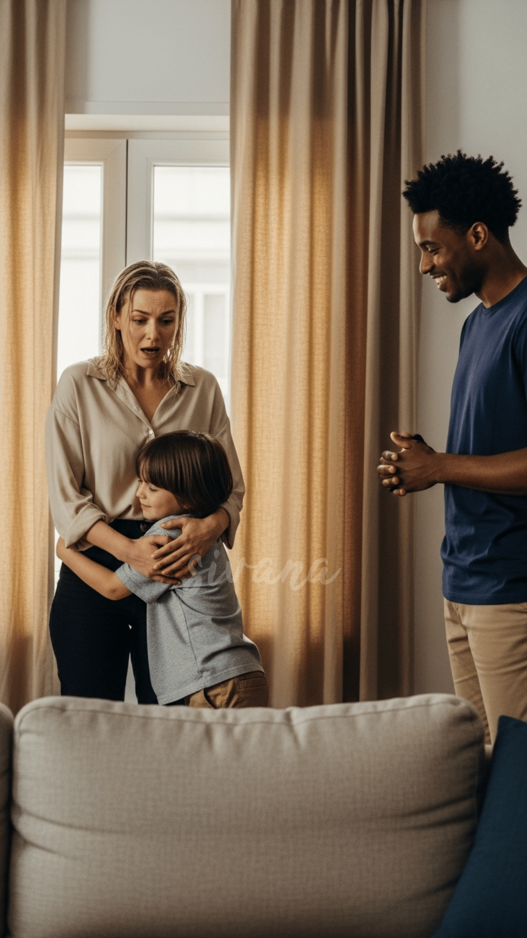Before the boy could answer, my husband — Caleb — stepped out of the bedroom, wiping his hands on his shirt like he had been doing nothing at all. He wore the same soft, easy smile that smoothed his face into someone I loved; it made my throat tighten with an old, stubborn affection.