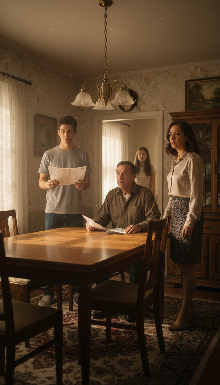 For three seconds, nobody moved. Dad stared at the paper like it had burned him. Mom’s smile tried to stay in place and failed.