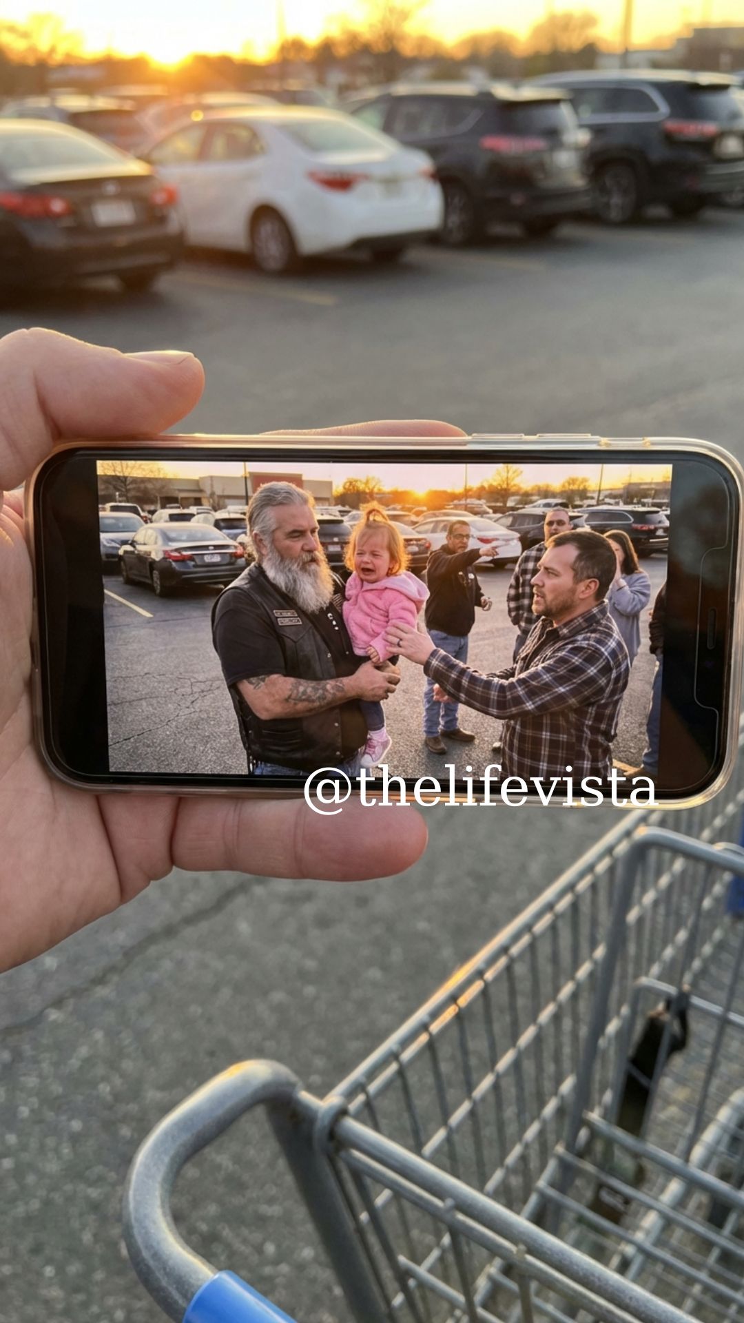 From their angle, the situation looked obvious: a fifty-year-old biker holding a screaming child while a frantic father reached for her.