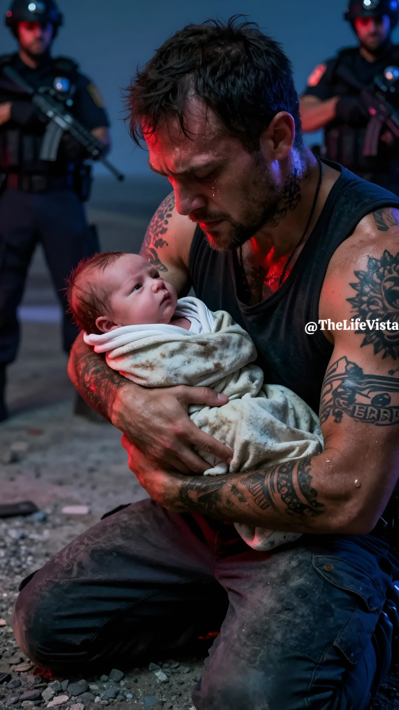 I was on my knees at the side of an empty highway, holding a baby who looked as though he might die if I let go of him too quickly, and the officers surrounding me saw a suspect before they saw a rescuer. My motorcycle was beside me, my tattoos were visible, my clothes were dusty from the road, and every visual detail that made up my life was being turned against me in real time. Fear had already done its work before I ever opened my mouth. I knew that if I moved wrong, spoke wrong, or even hesitated wrong, this moment could end in blood instead of handcuffs.