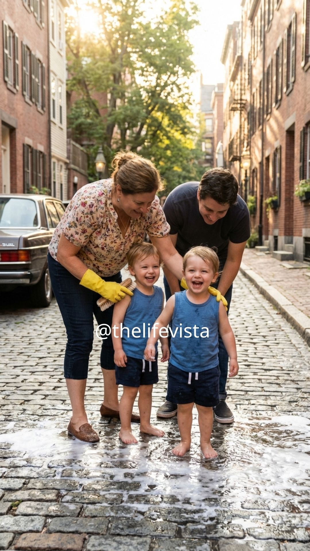 Twenty feet away, in the golden pool of the afternoon sun, his four-year-old twins were standing.