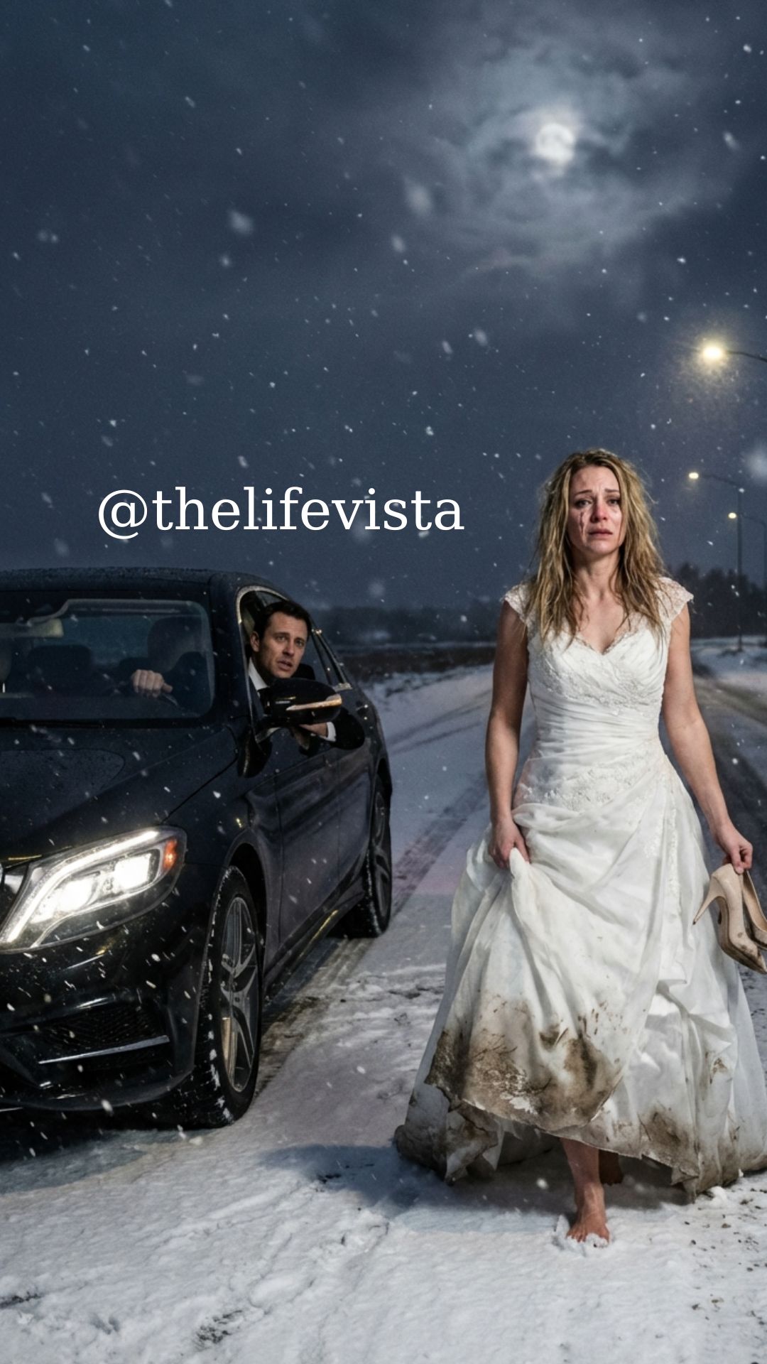 I saw her walking barefoot in the snow, her party dress soaked, her eyes glazed over. I rolled down the window and yelled that I wanted to help her. She stopped, hesitated… and looked behind her as if something were chasing her. In that instant, I understood that she wasn’t running from the cold, but from a night that had gone wrong. When she got into the car, she didn’t thank me. She said something that made me grip the steering wheel in terror.