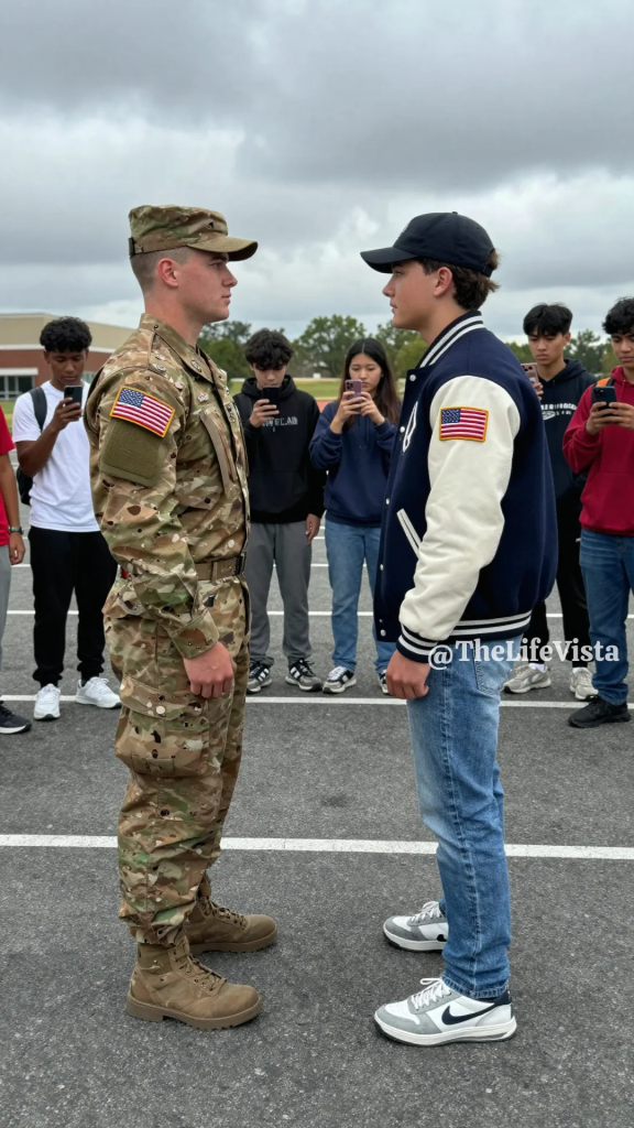 I walked toward them without running, because running looks like emotion, and emotion gives bullies hope. Each step was steady and deliberate, boots on pavement, shoulders square, hands loose at my sides, and the two boys on the flanks noticed me first. Their laughter cut off as their faces shifted from amused to uncertain, because they weren’t looking at another student anymore; they were looking at an adult with a posture they didn’t understand and eyes that didn’t ask permission. One of them murmured the leader’s name like a warning, but the leader was still too busy enjoying the scene.