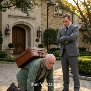 The Suitcase Secret 💼Watch closely as his hand firmly presses that heavy leather bag onto the older man’s back, the weight of it seeming to carry more than...