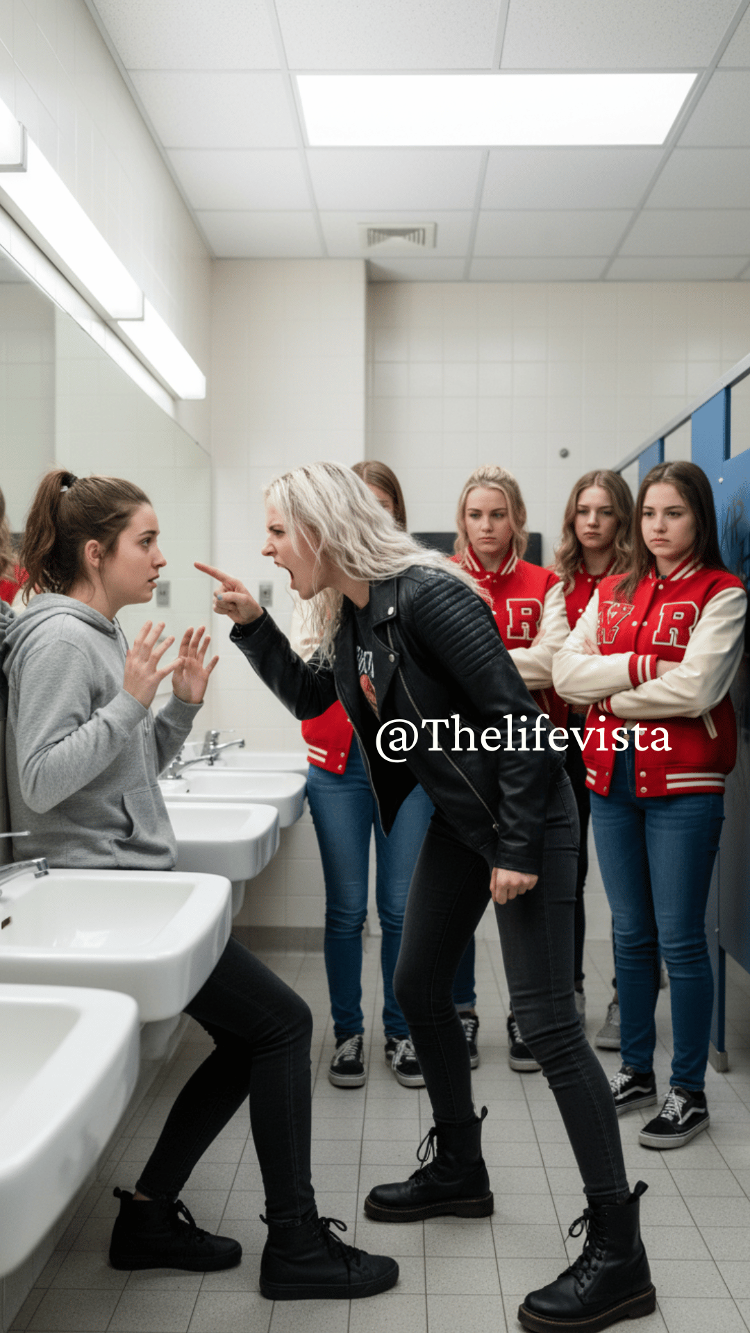 “You… you can’t be in here,” Brianna stammered, her voice shrill. “This is a girls’ bathroom! I’m going to call the principal! Do you know who my father is?”