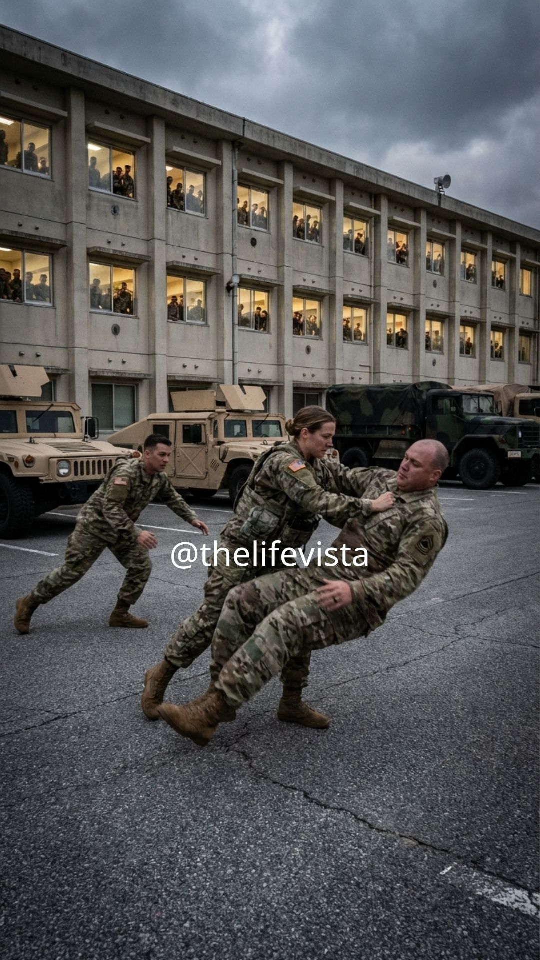 Fort Bragg disappeared in my rearview mirror by noon, but that parking lot stayed with me. Not because two men got dropped in front of a crowd. That part was easy. What mattered was what happened after: a whole company was forced to see how quickly arrogance collapses when tested by reality. That is why stories like this travel. Not because people love humiliation, but because deep down, everyone recognizes the same truth. The loudest person in the room is not always the strongest one. Sometimes the strongest person is the one sitting quietly at the table, watching, listening, and hoping nobody makes the mistake of forcing a lesson she never wanted to teach.