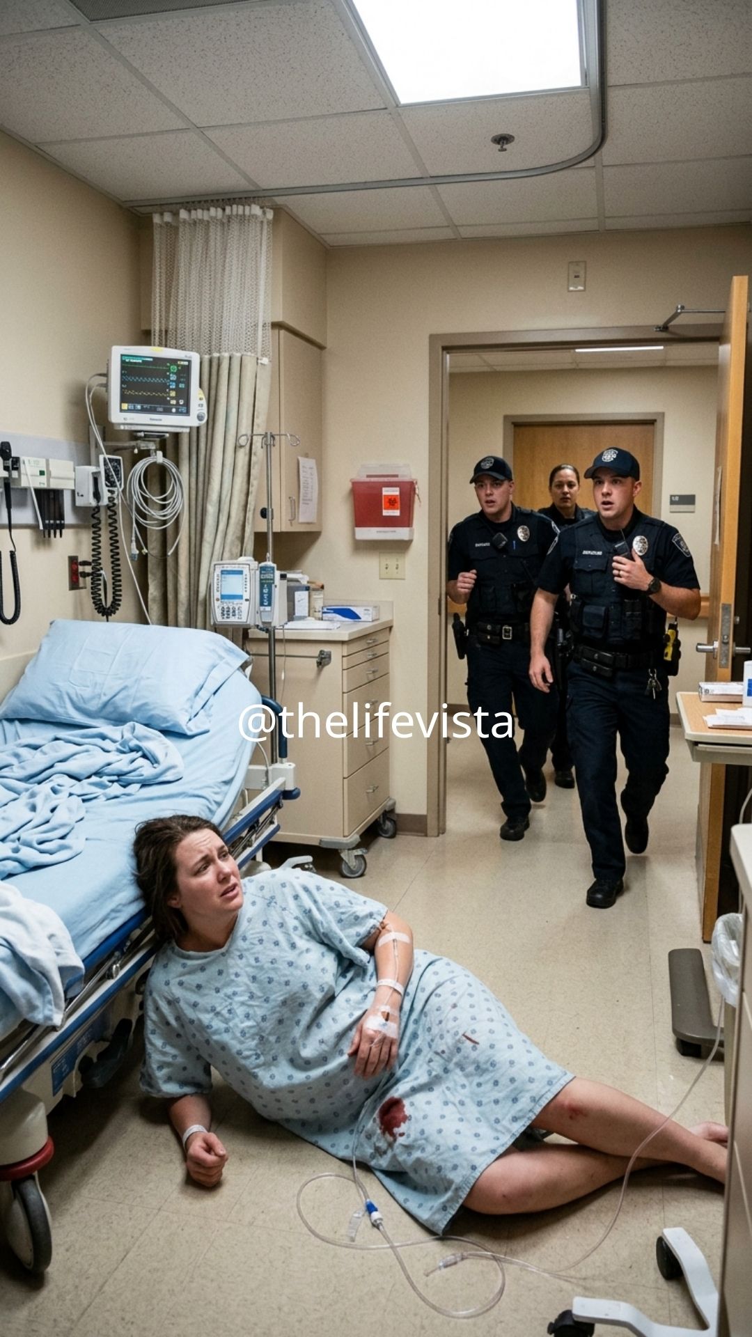 I don’t remember calling anyone. I don’t remember screaming for help. What I remember is the sound of footsteps running toward the room, urgent and heavy, and then the door bursting open, slamming into the wall as nurses flooded in—three of them, their faces flipping from routine focus to alarm in a heartbeat. One of them, a woman with dark hair pulled into a tight bun, dropped to her knees beside me. “Sweetheart, can you hear me?” she asked, voice high and urgent. “What happened?” Gloved hands reached for me, rolling me gently onto my back, and a flash of pain shot from my abdomen up my spine so fierce it made my vision flash white.