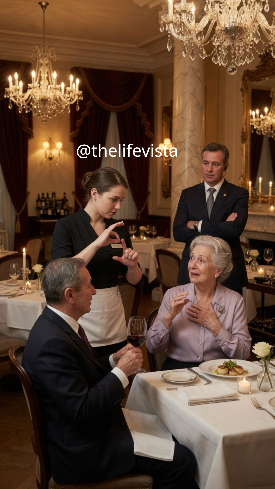Rachel Bennett hesitated for just a moment, fully aware of the risk and of Victoria Lang’s watchful presence somewhere in the room, but something deeper compelled her to act. Instead of speaking aloud, she raised her hands with slow, deliberate movements shaped by years of practice that had become second nature to her. Good evening. My name is Rachel. Would you like some wine? Eleanor Brooks’s reaction was immediate and profound. Her eyes widened, not in shock but in genuine recognition, and then something softened in her expression, something that had been missing moments before, as if a light had suddenly been turned on inside her after a long period of darkness.