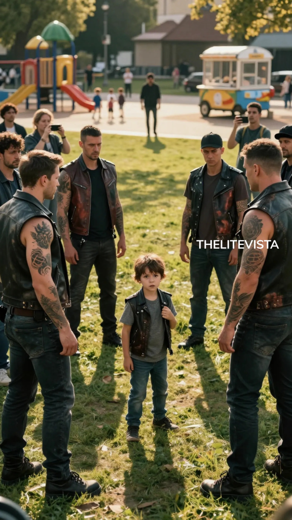 There is no cleaner way to say it than that. A group of large grown men in leather surrounding a child in the middle of a public park looks wrong even if no one is shouting. Even if no one is touching him. Even if every movement is slow and controlled.