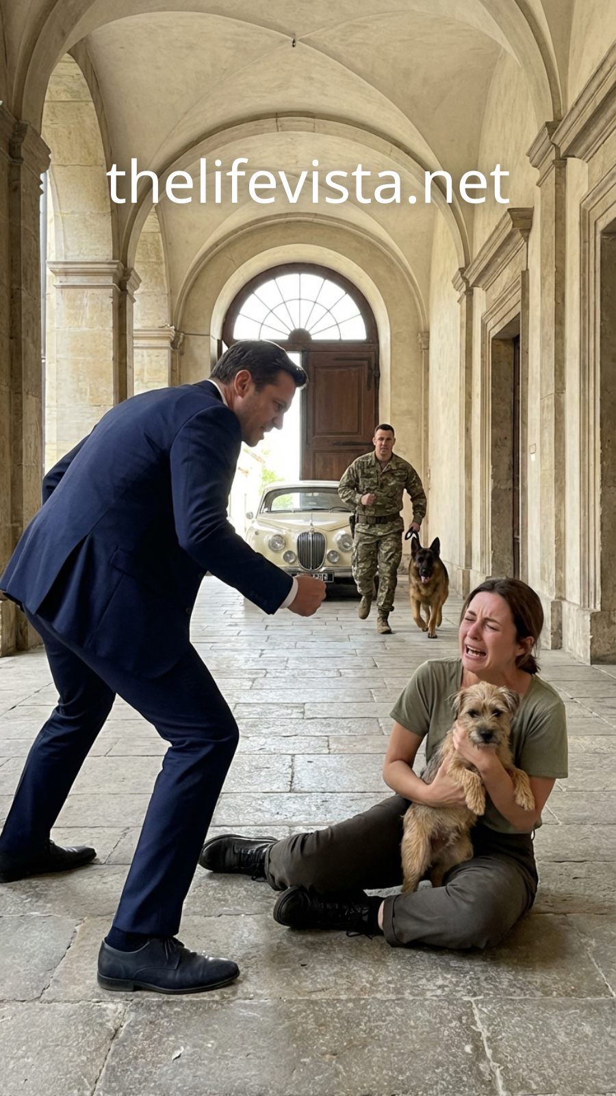 Talia tried to push herself up, palms slipping on polished stone. Her face burned hotter than the pain in her leg. She could hear the couple murmuring—low, amused, dismissive. She felt herself shrinking, instinct screaming at her to grab her bag and run back to the part of the city where invisibility was safer than humiliation.
