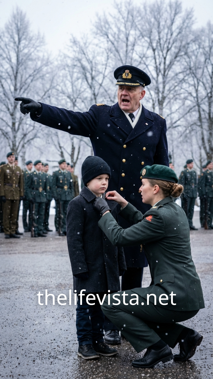 The wind sliced through the air like shattered glass. Snow whipped sideways, erasing the road, the horizon, even the sky itself. Distance meant nothing out there—everything dissolved into white and noise. I was on base supply duty, hauling emergency provisions between the base and nearby civilian depots. Double shifts. No margin for error. No excuses. All I wanted was five minutes of warmth and a cup of bitter, overcooked coffee from a small roadside store before heading back into the storm.