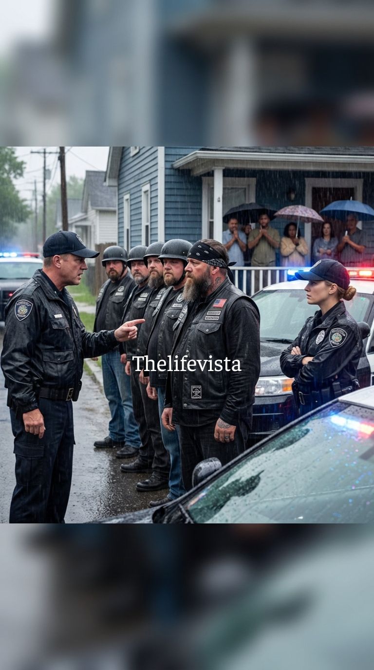 Within minutes, nearly forty bikes rolled slowly along the curb and parked in disciplined alignment opposite the Bennett house. Engines shut off almost simultaneously, leaving only the hiss of rain striking hot metal.